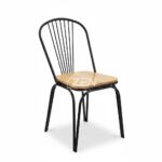 Ghế cafe sắt tăm quạt gây ấn tượng mạnh mẽ nhờ vào phần lưng ghế được tạo nên từ những thanh sắt tăm mảnh mai, uốn cong duyên dáng như hình cánh quạt xòe. Sự kết hợp giữa khung sắt sơn tĩnh điện màu đen mạnh mẽ và mặt ngồi gỗ cao su đã được xử lý mối mọt tạo nên một tổng thể hài hòa, vừa hiện đại vừa phảng phất nét cổ điển.